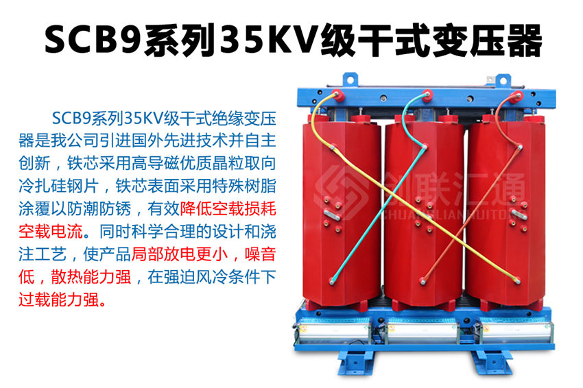 SC(B)9系列35KV環(huán)氧樹脂干式變壓器新一代節(jié)能產品,該系列配電變壓器產品使用在變壓器電壓直接從35KV電網轉變?yōu)?00V配電的特殊場合,可減少10KV輸變電環(huán)節(jié),使運行維護費用明顯降低。35KV級無勵磁調壓配電變壓器產品通過了家級鑒定,確立為高新技術產品。 產品具有損耗低、阻燃性好、承受短路能力強、體積小、噪音低、耐雷電沖擊性能好,溫度分布均勻等優(yōu)點,而且由于環(huán)氧樹脂干式變壓器不使用變壓器油,不會產生油污染,無爆炸危險。產品可作為配電變壓器廣泛適用于電力系統城網改造,也可用于高層建筑、機場、車站、港口、地鐵待對消防、環(huán)保有嚴格、特殊要求的多種場合。