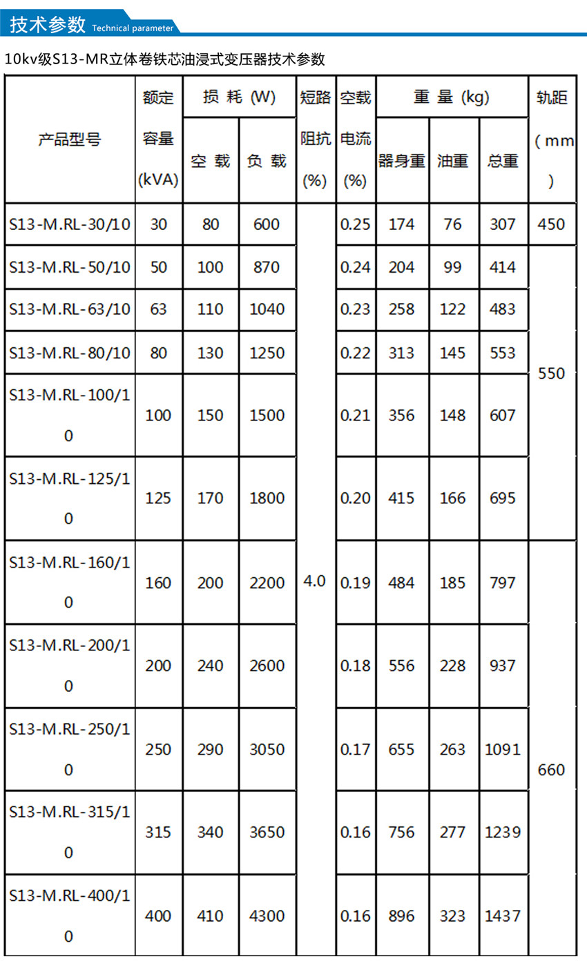 . S11-M.RL-/10-20 、S13-M.RL-/10-20 立體三角形卷鐵心變壓器有10kV 及20kV 兩種電壓兼容的產品系列,在10kV 電網向20kV電網過渡更新時期.極大的方便了用戶。